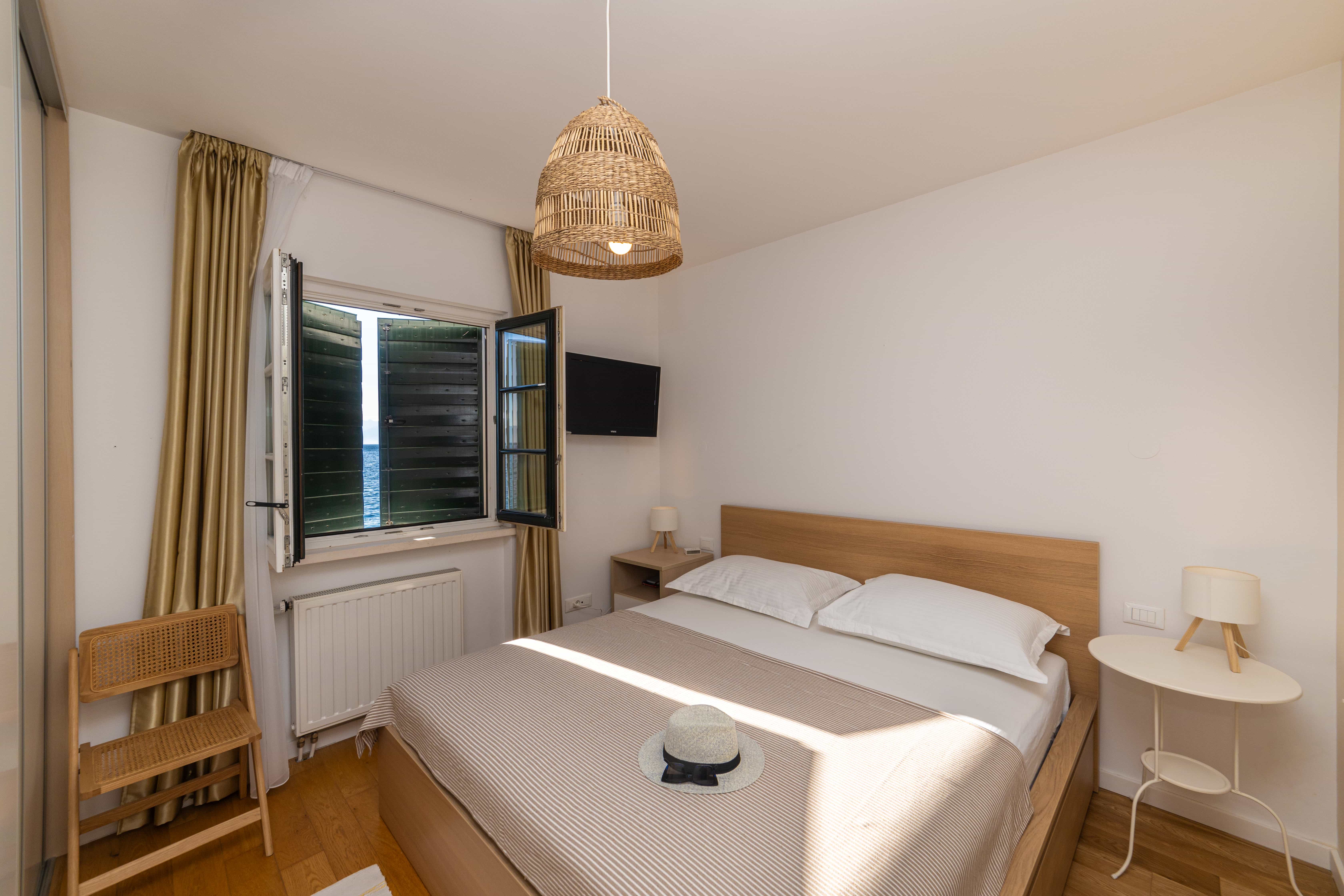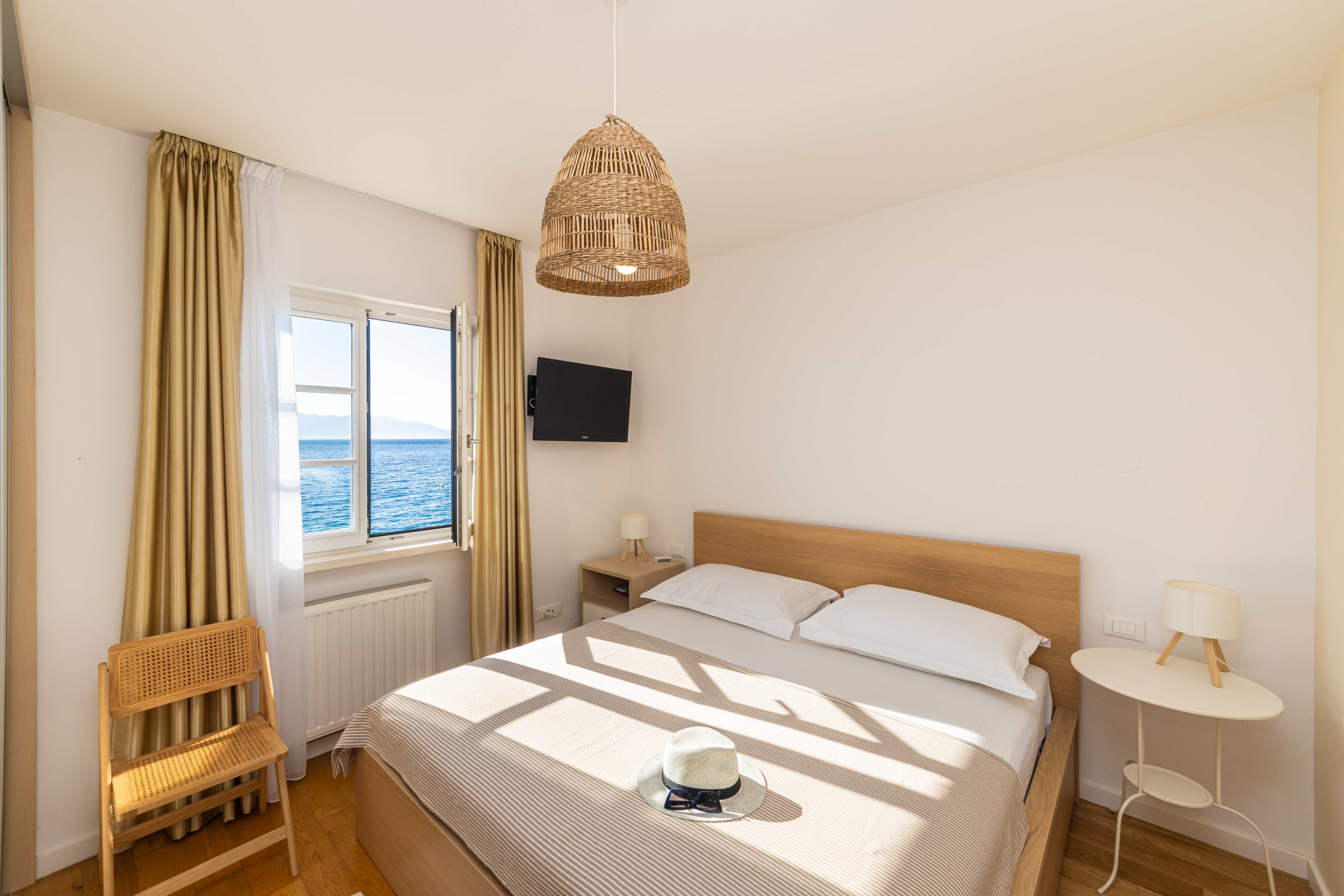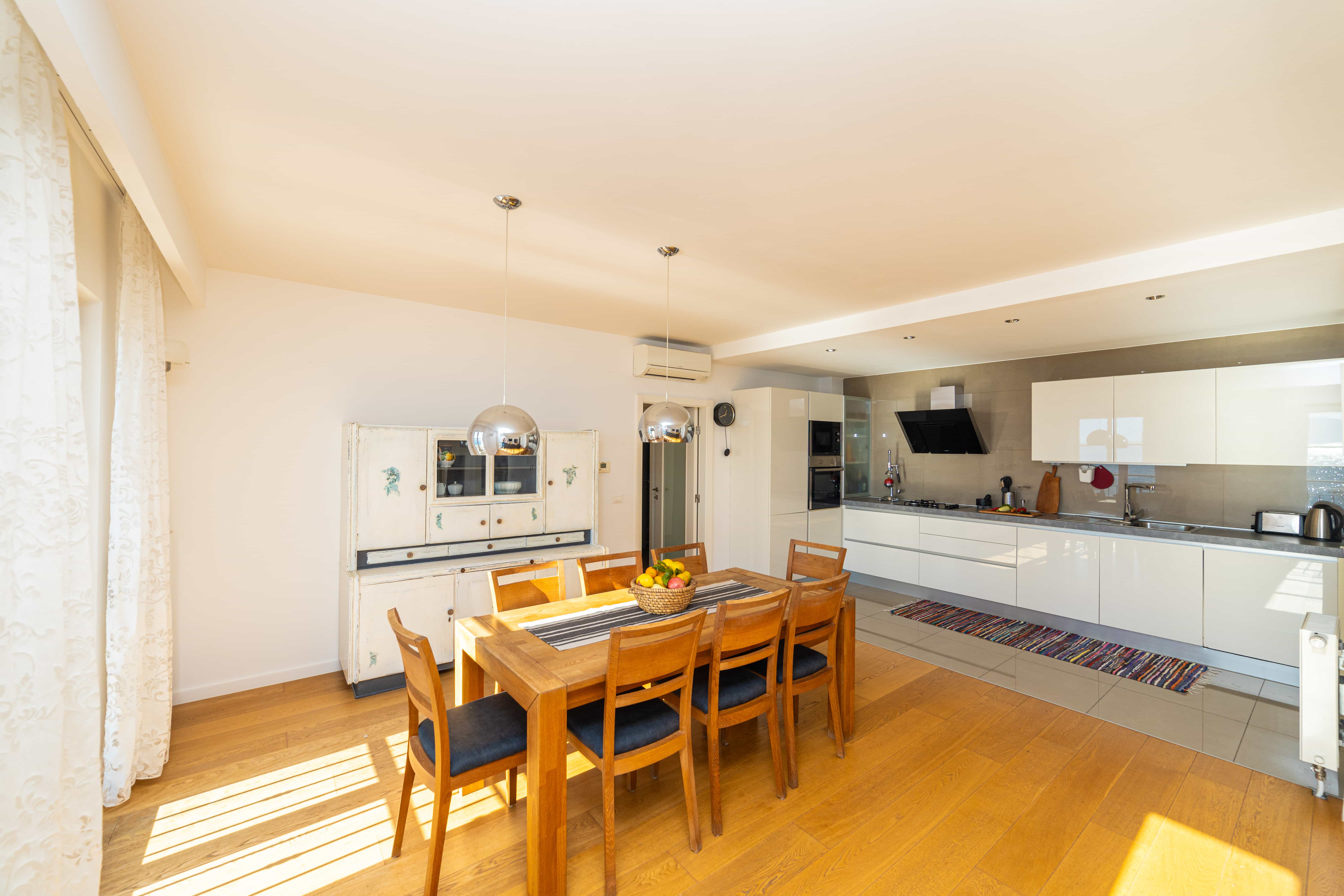 The apartment with a sea view is located on the first floor of the beach house. It is a beautifully furnished apartment with an area of approximately 145 square meters, accommodating up to 6 guests, and features a private entrance. The apartment is fully equipped and meets modern standards. Two beach loungers are available for your use at the beach, which is just 5 meters from the house.