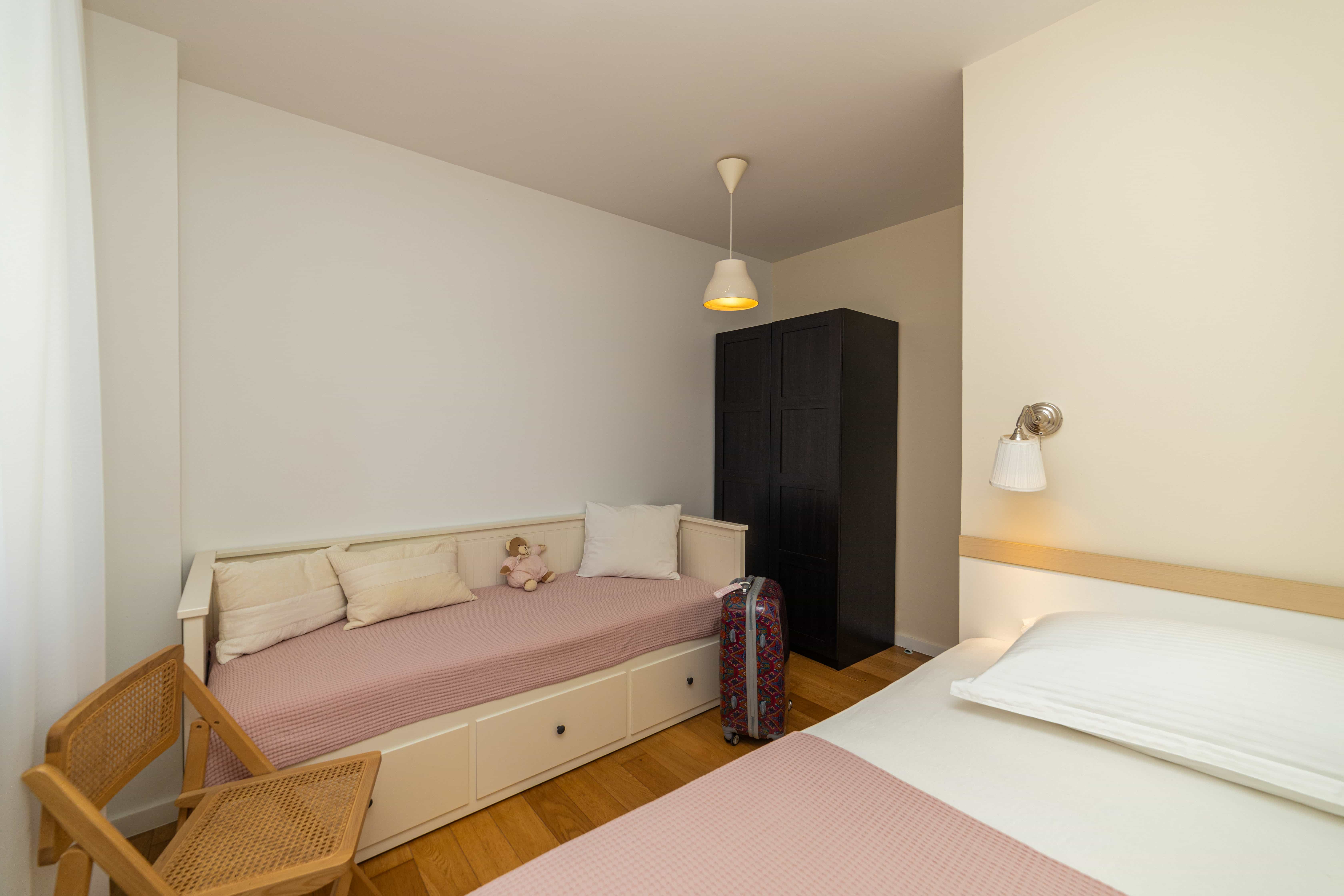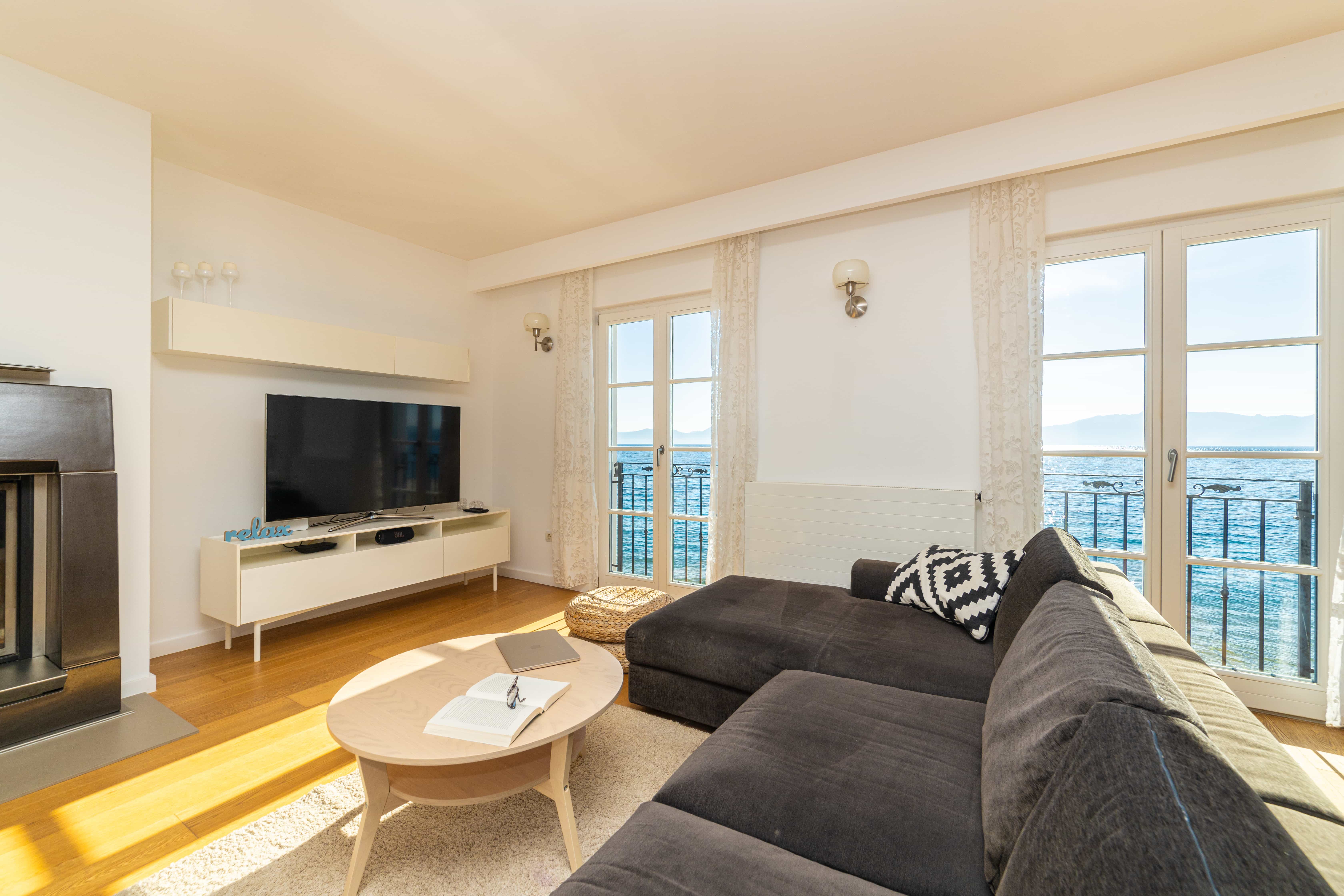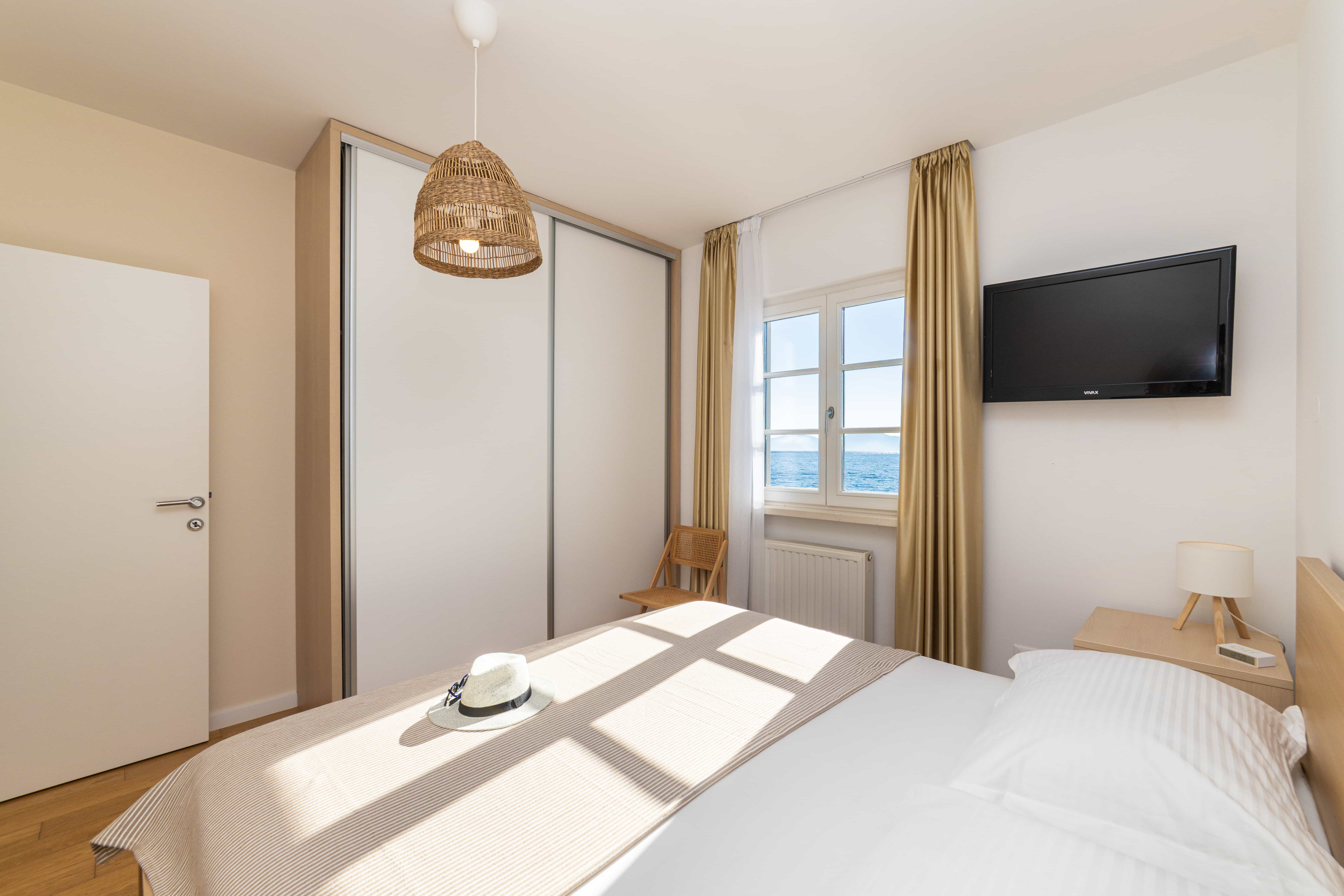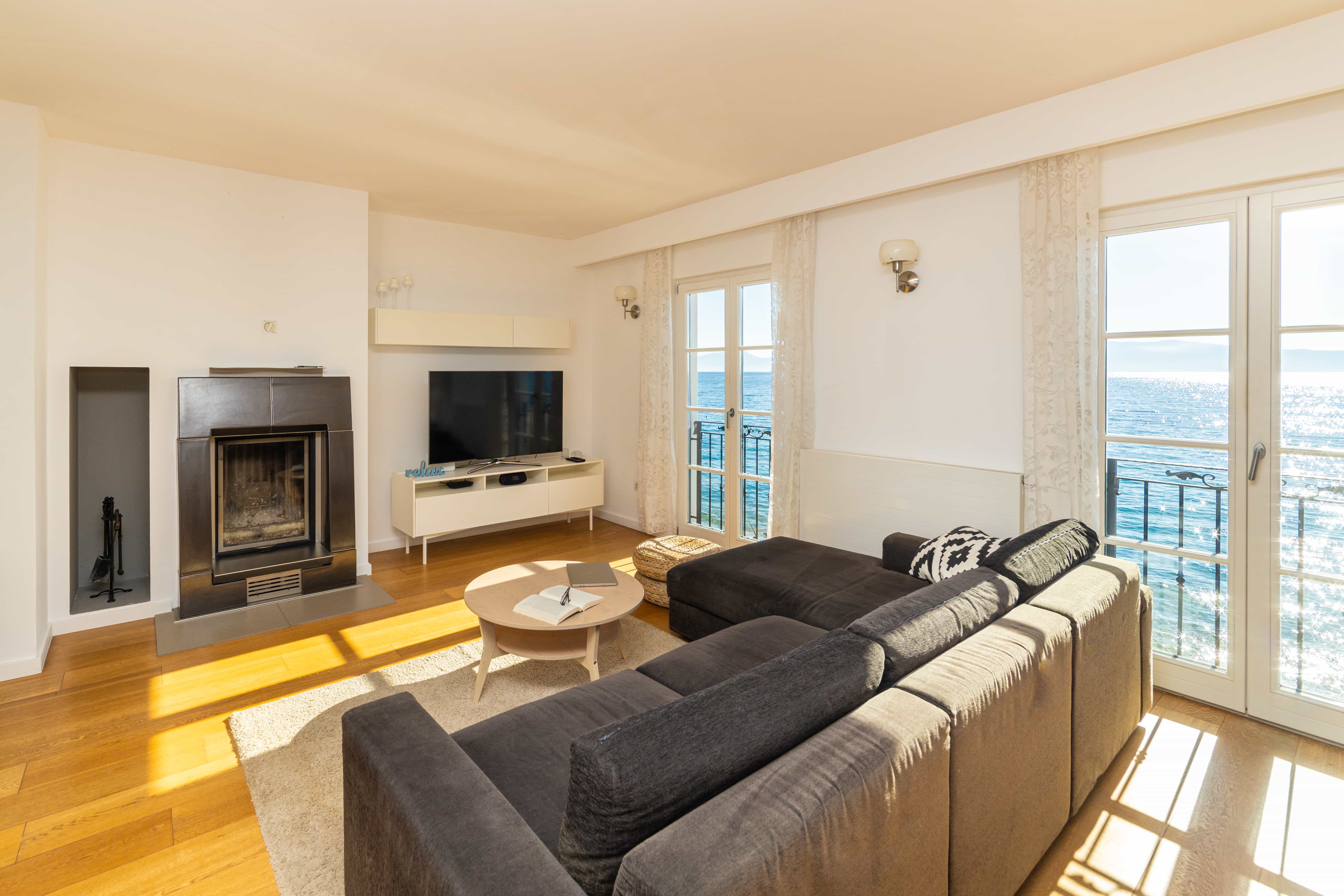 The apartment with a sea view is located on the first floor of the beach house. It is a beautifully furnished apartment with an area of approximately 145 square meters, accommodating up to 6 guests, and features a private entrance. The apartment is fully equipped and meets modern standards. Two beach loungers are available for your use at the beach, which is just 5 meters from the house.