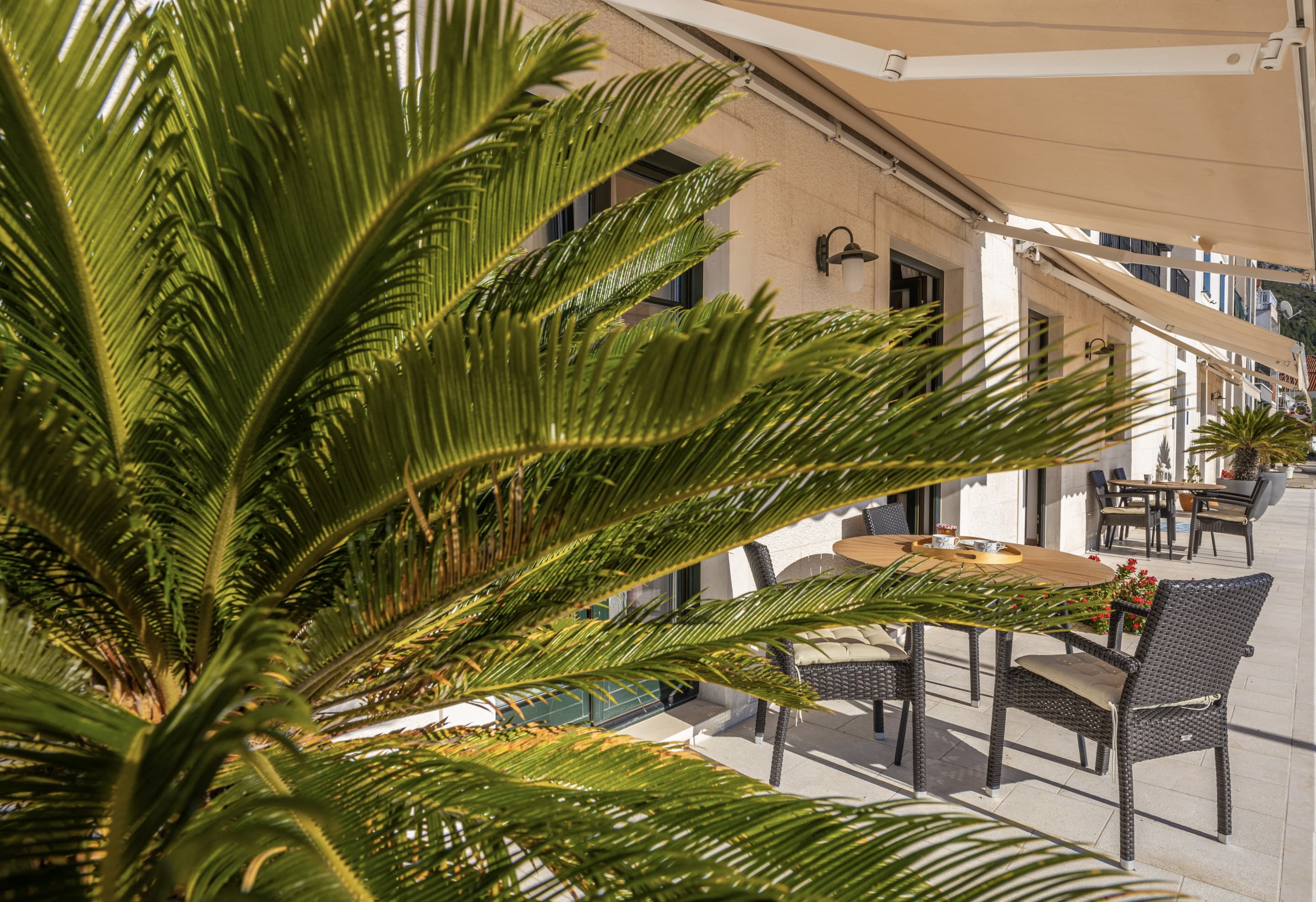 The apartment with sea view is situated on the ground floor of the beach house. It is a lovely furnished apartment with a size of about 45 square meters for up to 3 person, with separate entrance. The apartment is fully furnished and meets today’s modern requirements. Two beach chairs are available and free to use on the beach located only 5 meters from the house.